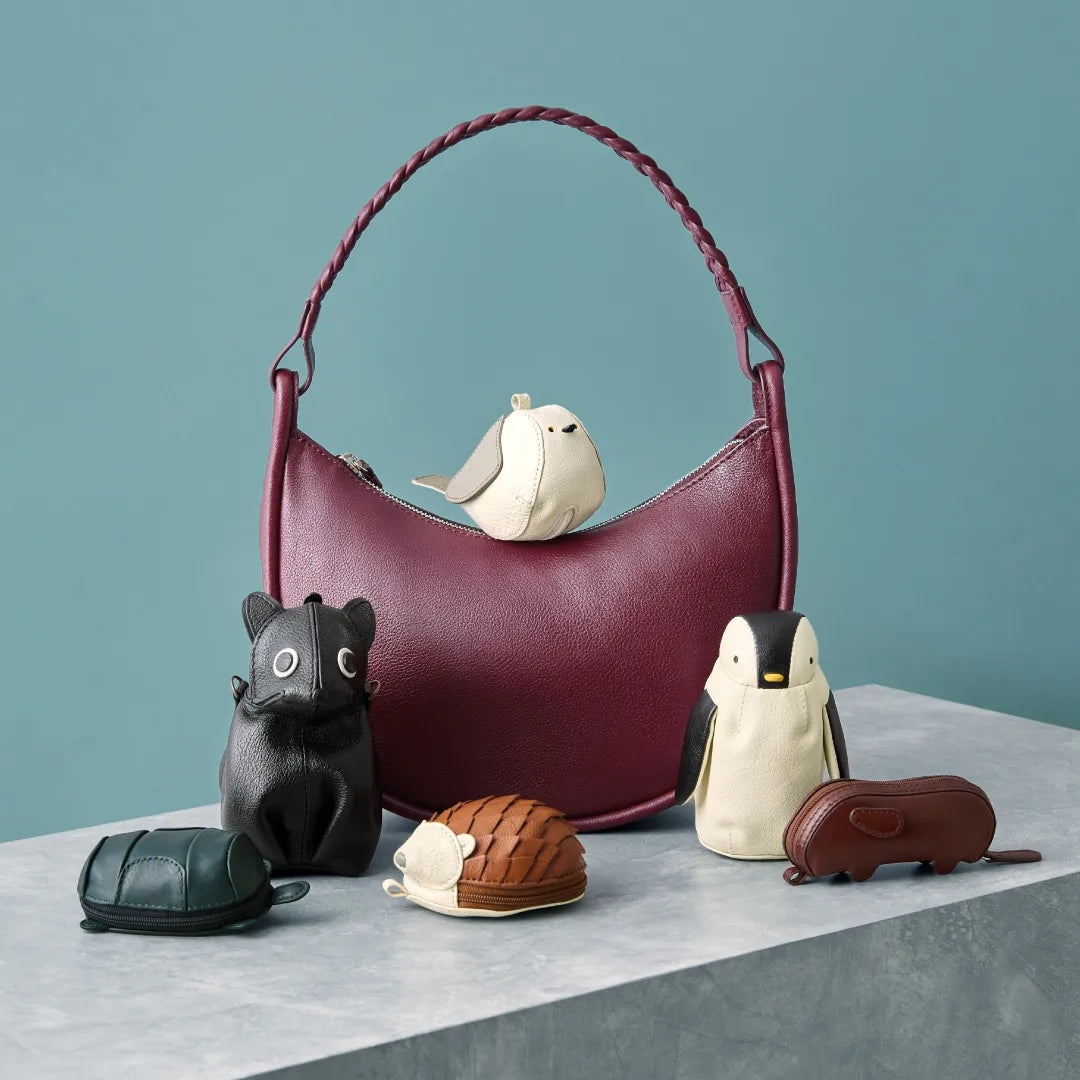 Eriko Yamaguchi animal shoulder charms are ethically-produced, lovingly handcrafted storage pouches—an adorable way to carry your essentials.