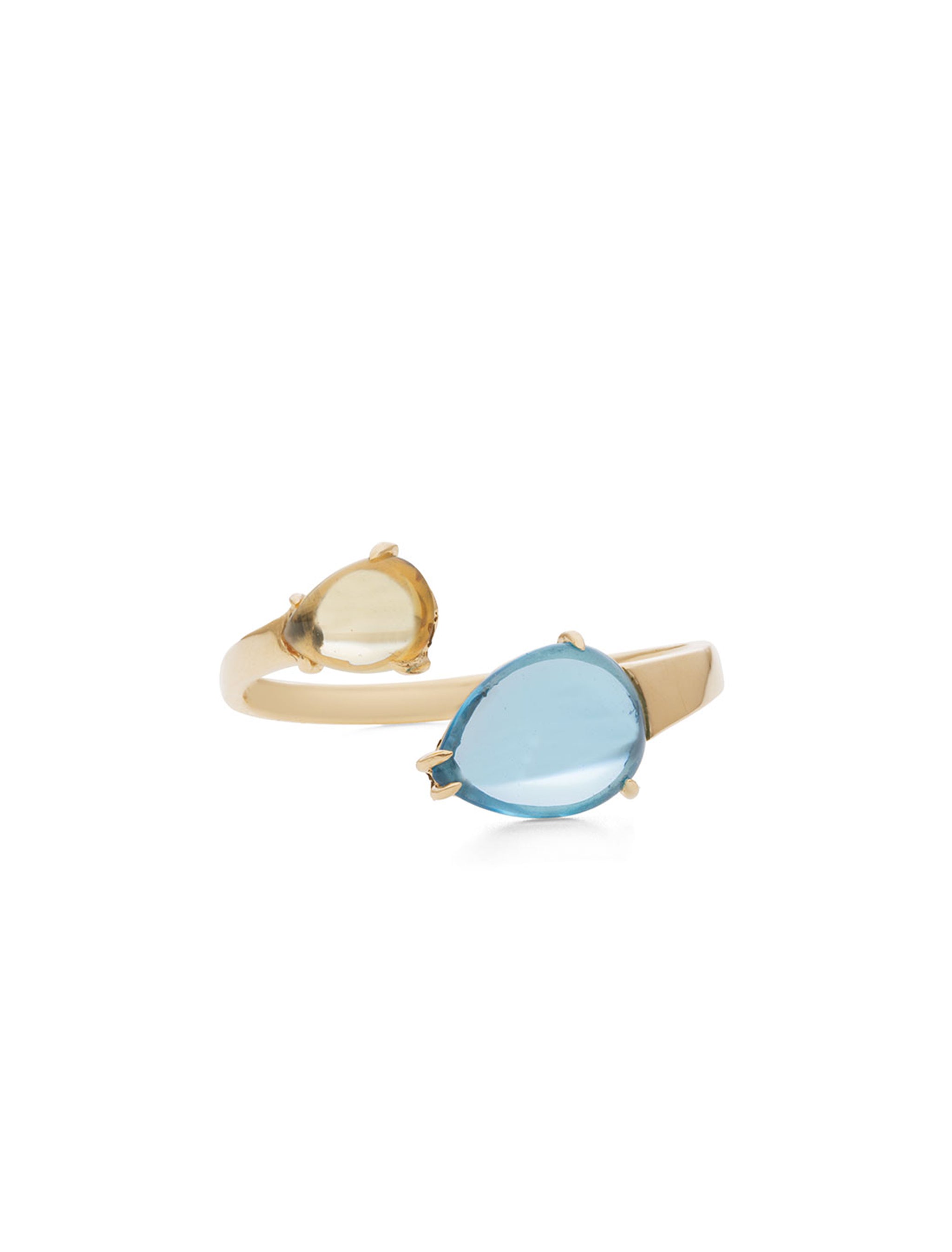 The Shizuku ring expresses the moment when a drop of water drips on your finger with the colors of natural stones. The contrast between the two gently enveloping natural stones gives your hand a clean and clear shine.